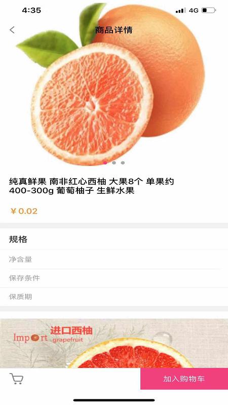 用戶可以直接選中水果加入購物車之中,在購物車之中可以結算商品費用;