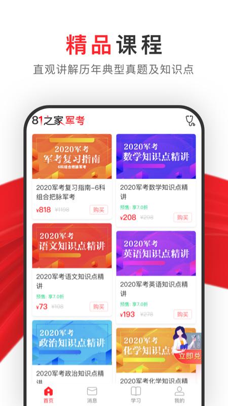 81之家軍考為準備參加軍考的朋友們設計,裏麵各種各樣的學習資料都非常多,配套教輔,快速掌握教材中所有重點和考點,更有軍考名師線上課程與士兵考學最需要的軍考資訊。這個app很好用大家快來下載!