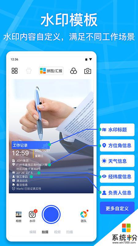 1.拍照自動加打卡水印,涵蓋工作和生活。