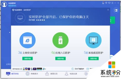 最重要的一點,就是給電腦安裝一個安全防護軟件,就拿騰訊電腦管家來說,打開後可以看到有一個實時防護功能