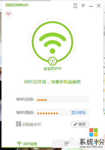 4這時候打開360wifi共享軟件( 自行百度下載去),這時候設置好名稱、密碼就啟動就好。