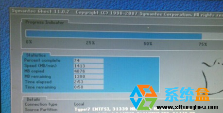6、百分百後電腦會重啟(如果沒有重啟的話,手動重啟電腦即可),出現熟悉的畫麵後進入全自動安裝狀態,可以說係統幾乎完成安裝了,這個過程需要一定時間,一般5-10分鍾就可以完成安裝,主要是看個人電腦配置。