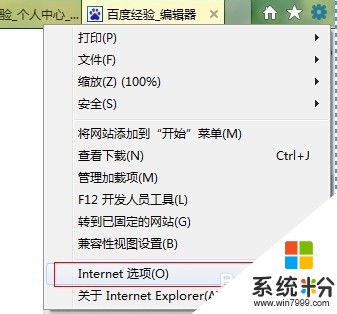 1打開瀏覽器,選擇“設置”--“Internet選項”