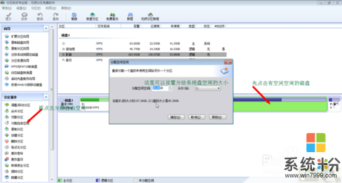2下載並打開分區軟件,擴展係統盤的空間(剩餘的空閑空間建議至少留10GB,如果已有則忽略此操作)(完後記得點左上角的提交才能應用操作)