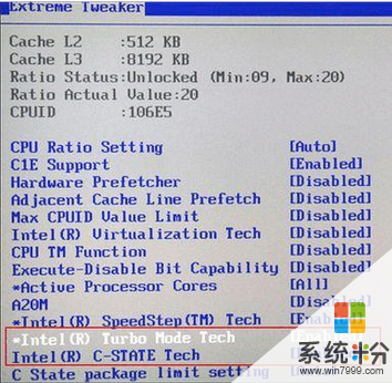 在BIOS設置中找到“Turbo Mode”和“C-STATE”項,將這兩項都設置為“Enabled”才能得到完整的睿頻加速,設置完畢後按F10保存退出就可以了。
