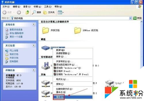 雙擊打開“我的電腦”,然後右擊要檢查的驅動器,彈出的快捷菜單單擊“屬性”命令