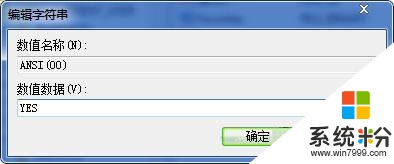 二、在注冊表中,依次展開“HKEY_LOCAL_MACHINE \ System \ CurrentControlSet \ Control \ FontAssoc”項,然後在該項下找到Aossiated CharSet項,在右側窗格右鍵單擊空白位置處,選擇“新建”-“字符串值”,輸入鍵值名為ANSI(00),然後雙擊打開進入編輯窗口,在編輯窗口中輸入Yes。