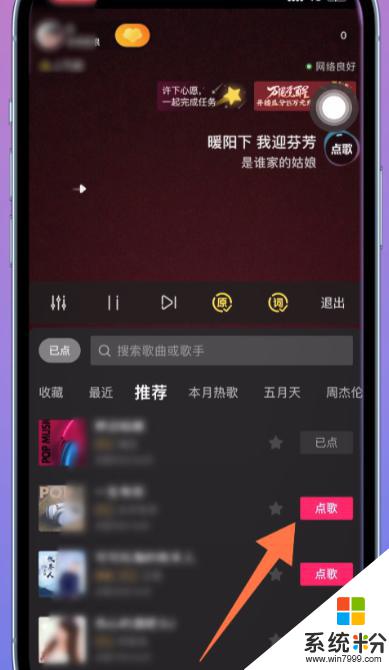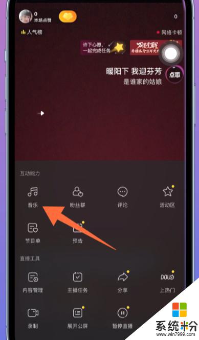 6.進入下一個頁麵之後,選擇自己喜歡的【音樂】,點擊歌曲後麵的【點歌】按鈕,直播間就會播放音樂。